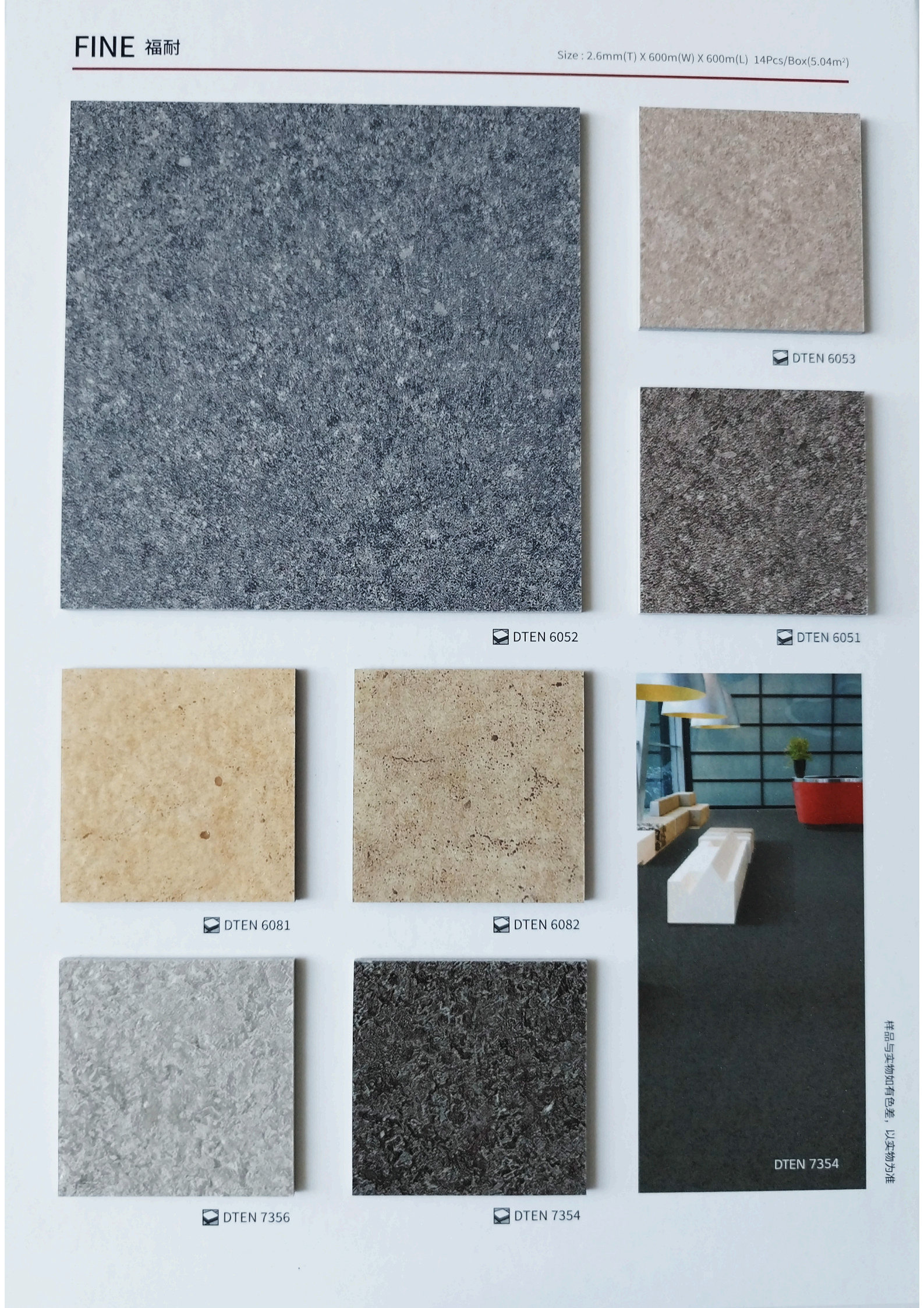 花色丰富:福耐PVC地板提供多种花色和图案选择,如石纹、地毯纹等,满足不同装修风格需求。