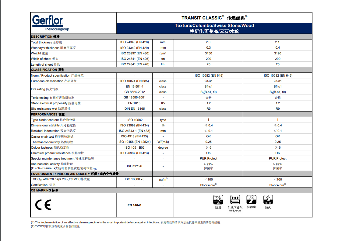 Gerflor传递经典-PVC卷材地板 日期:2025-08-30 13:31:16 人气:13024 洁弗乐传递经典系列 北京仓储中心产品规格:2.0mm*2.0m*20m/卷;材料结构:PVC多层复合地板;表面处理:UV抗污处理;地板等级:中高端;定制厚度:3.0mm;耐磨层厚度:0.35mm;生产周期:现货直发,无现货7天左右;质量保证:防火B1,环保,防滑R9.支持随机抽样复检。库存面积:单色1000㎡以上返回首页