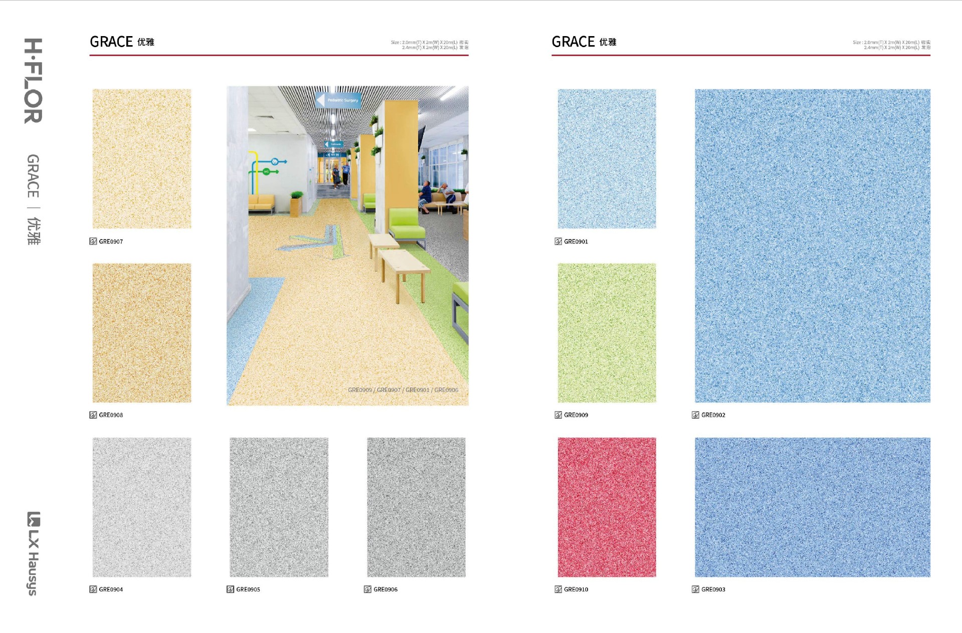 LX优雅Grace地板是LX Hausys推出的一款商用卷材地板,以水磨石纹为特色,兼具优雅格调与实用性能,适合教育、办公、医疗、商场等多种空间场景。以下是对该产品的详细分析:
