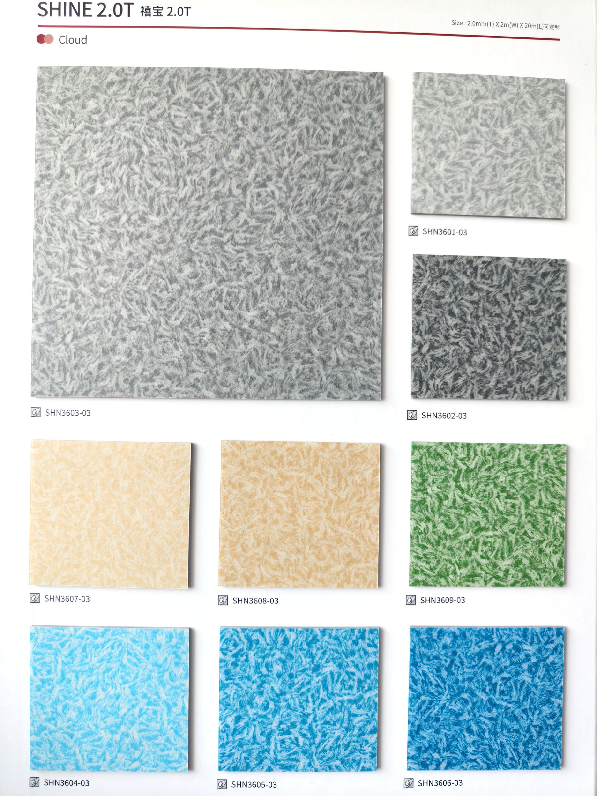 厚度为2.0mm,规格为2m×20m,材质为PVC。