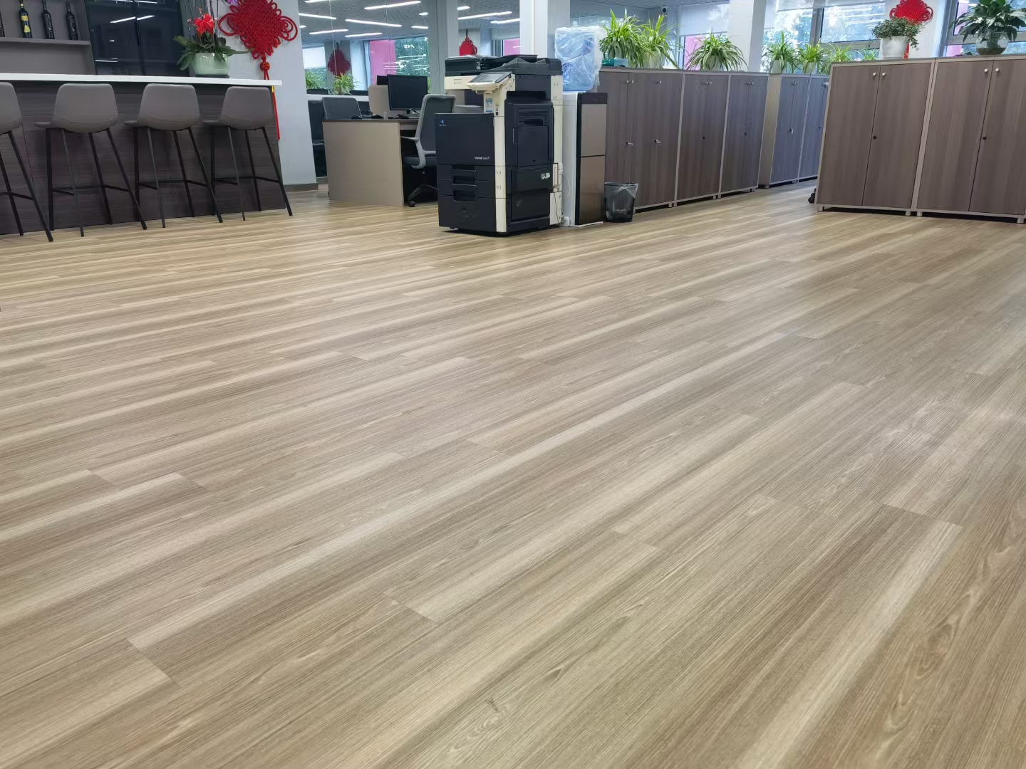 应用场景:威牛系列片材地板适用于所有室内场所,包括商场、学校、酒店、办公室、养老院、幼儿园、图书馆等,能够满足不同场所对地板性能和装饰效果的要求。